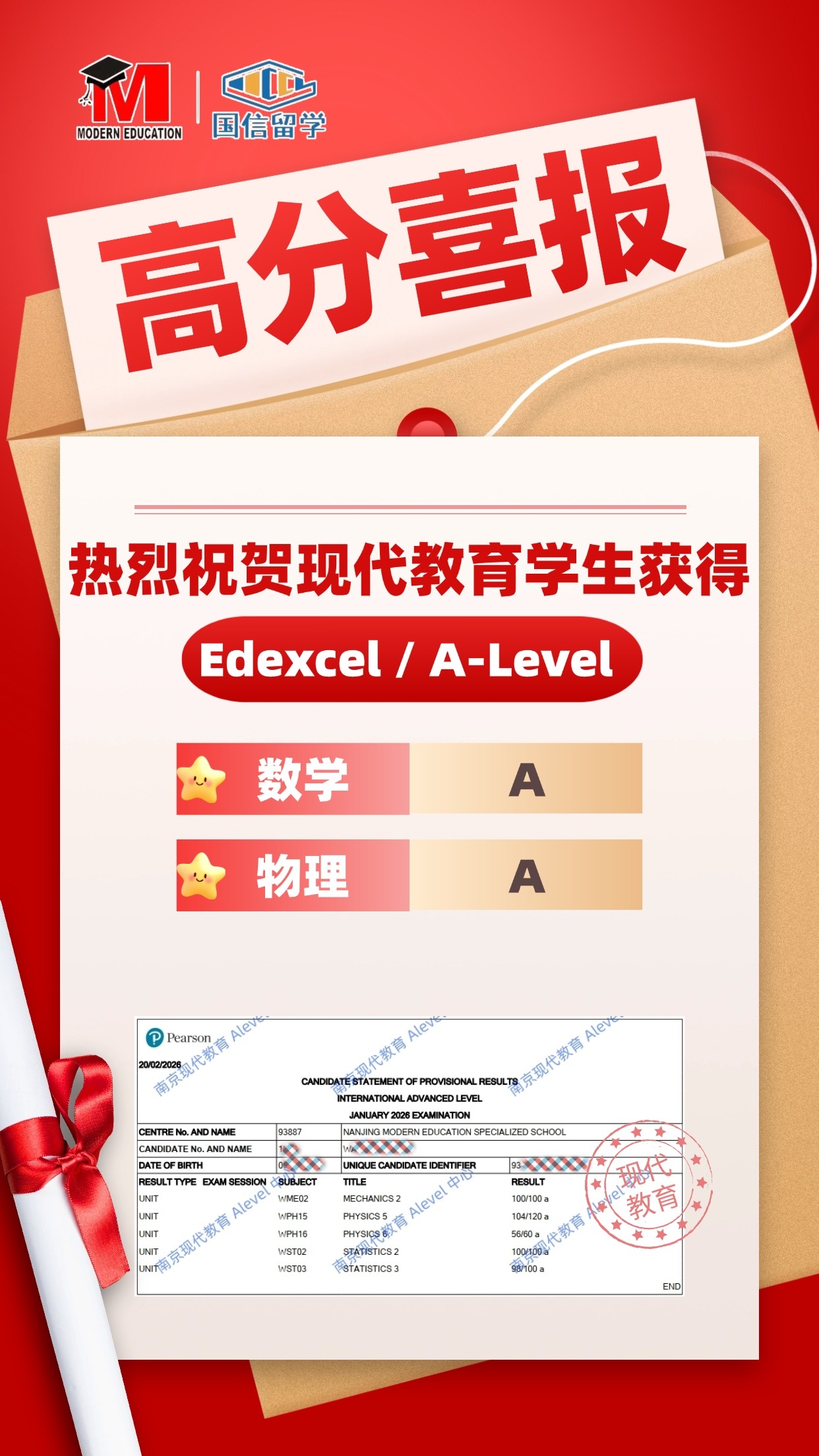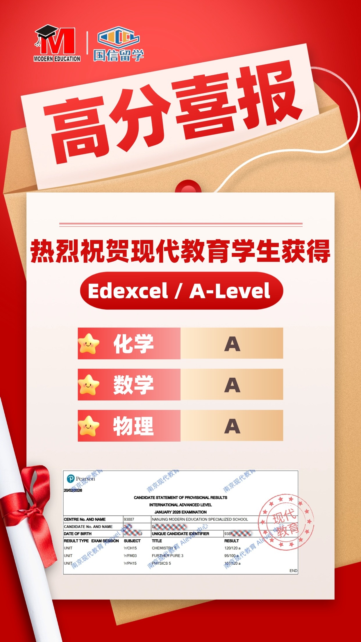 · 喜报!Edexcel A-Level出分大捷~南京现代教育学子高分刷屏,上岸稳了!